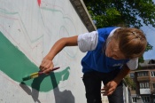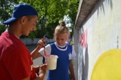Бригада состоит из девяти человек, каждый в отряде и даже бригадир ходит в художественную школу или уже ее закончил. Так что желания красить на заборах, на пользу города, конечно, у них хоть отбавляй! А нам лишь остается рассматривать их художественную деятельность, ведь сейчас лето и торопиться нам некуда.