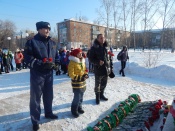 Почти сотня Назаровских ребят из отрядов ЮИД почтили память тех солдат, которые погибли в «горячих точках» минутой молчания. По окончанию митинга к памятнику были возложены цветы.