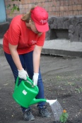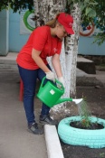 Парни каждый день подметают тротуар близлежащей территории молодежного центра. А девочки убирают мелкий бытовой мусор на детской площадки и ухаживают за цветами и клумбами.