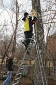 Совет молодежи предприятия 17 апреля побывал в детском саду «Катюша». Молодые сотрудники изготовили скворечники для птиц и разместили их на деревьях, которые растут на участках для прогулки. Помогали горнякам ребята из подготовительной группы «Лунтики». Вместе со взрослыми они выбирали цвет краски для птичьих домиков – на каждый из скворечников краской из баллончика нанесли логотип СУЭК, чтобы он был ярче и заметнее. Детский сад находится вблизи Березовой рощи, где активно выводят потомство птицы, поэтому новые скворечники не останутся без хозяев надолго. На память дошколята получили фотоальбомы «Первозданная Россия», на страницах которых запечатлены красивейшая природа, дикие животные, птицы, насекомые.