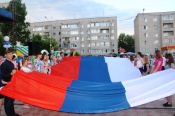 В завершении флеш-моба прозвучал гимн Российской Федерации и молодые люди развернули большой флаг России.