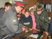 Они посетили Межмуниципальный отдел МВД России «Назаровский». Мероприятие прошло в рамках пропагандисткой акции «Эстафета подвига», а также в рамках повышения доверия населения к органам внутренних дел. Детям продемонстрировали оружие, состоящее на