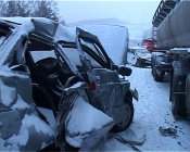 Молоковоз Hyundai, двигаясь в сторону Ачинска, на скользкой дороге не смог подняться в «Осиновую гору». Включив  аварийный  сигнал, водитель прижался к правой обочине.  По всей видимости, водитель «Оки», двигавшийся в том же направлении, не успел