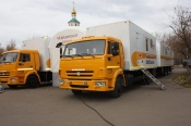 Красноярская краевая клиническая больница представила мобильные поликлиники, оборудованные на базе КАМАЗов с прицепами. Автомобили приобретены по программе модернизации. В настоящее время мобильные комплексы проходят техосмотр, после  на этих