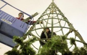 К работам приступили в начале недели. На монтаж железной конструкции уйдет несколько дней. Сначала специалисты собирают металлический каркас. Он состоит из различных конструкций. Затем на ёлку крепят искусственные «хвойные лапы», после чего ель