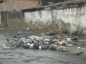 На этом месте летом торговали фруктами, а в осеннее-зимний сезон - сносили мусор все кому не лень. Оставленное предпринимателем  временное сооружение лишь отчасти укрывало пакеты и коробки с мусором.