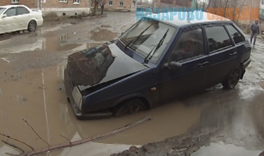 В конце рабочего дня понедельника, 20 апреля, очевидцы сообщили корреспондентам об автомобиле, провалившемся во дворе дома 57 «А» по улице 30 лет ВЛКСМ. ВАЗ угодил в ловушку.