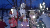 Она наглядно демонстрирует необходимость применения пешеходами «светящихся» элементов. Снеговик в специальном автомобиле и даже горка и елка у входа в дошкольное учреждение