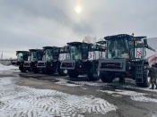 Сразу пять новых комбайнов на днях пополнили парк сельхозмашин растениеводческого предприятия Сибагро