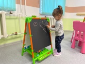 В детской поликлинике в игровую комнату поставили три игровых мольберта