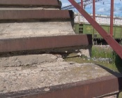 В Агентство новостей «Пирамида» поступило несколько обращений от назаровцев. Горожане уверены - виадук опасен. К слову, его установили 35 лет назад. За эти годы капитальный ремонт не проводили. Такая ситуация вполне обоснована. По нормам конструкцию имеют право реконструировать не раньше, чем через 50 лет. Назаровцы о техническом состоянии виадука судят только внешне. На ступенях много трещин.