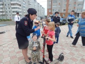 Не меньшей популярностью пользовалась тематическая фотозона. Каждый желающий мог надеть форменное обмундирование сотрудника, посидеть в патрульном автомобиле, сказать свое обращение с помощью громкоговорящего устройства и почувствовать себя настоящим инспектором. Начальник назаровской Госавтоинспекции Алексей Селиванов вручил благодарственные письма и памятные подарки местным средствам массовой информации за плодотворное сотрудничество и донесение до горожан объективной информации о деятельности ГИБДД, а также самым активным подписчикам тематической группы в социальных сетях. Особые благодарственные письма были вручены предпринимателям, которые помогли организовать праздник за их активную жизненную позицию и помощь в работе по профилактике дорожного травматизма.