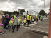 Для практической части сдачи экзамена маленькие велосипедисты в сопровождении родителей, педагогов и юных помощников Госавтоинспекции прошли в «Шагающем автобусе» по улицам города, который возглавлял инспектор ГИБДД. Дошкольники, одетые в световозвращающие жилеты, демонстрировали знания пересечения проезжей части дороги и движения по тротуарам. Перед каждым пешеходным переходом ребята громко проговаривали лозунги, призывающие всех водителей велотранспорта выполнять правила перехода проезжей части, спешиваясь с велосипеда и прокатывая его по пешеходному переходу.