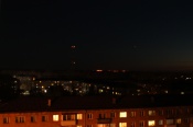Единичные быстро перемещающиеся святящиеся точки – это проблесковые маяки на комбайнах. Их включает механизатор, когда едет, чтобы отгрузить зерно в КамАЗ. В этот момент жатка поднимается и техника перемещается по полю на приличной скорости. Этот процесс цикличен. Добавим, в районе Преображенского уже закончили уборку урожая, то есть огней в той стороне назаровцы больше не увидят.