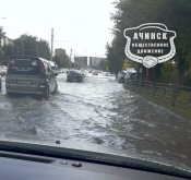 Сильный ливень прошёл накануне и в нашем городе. Однако, в соседнем Ачинске случился настоящий потоп. Местные жители делятся в социальных сетях фотографиями и видео последствий вчерашнего ливня.