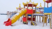 Целый детский городок, с игровыми элементами расположен напротив детского сада. Но, развлекательный центр пользуется популярностью не только у малышей. Ребята, по окончанию уроков в школе, которая находится в пешей доступности, сразу идут повеселиться на площадку.