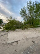 Накануне вечером в городе разбушевался сильный порывистый ветер. Дождя практически не было. За счет ветра тучи быстро обошли город. Но ветер нанес небольшой урон.
