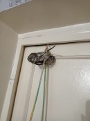 Животное приземлилось на самый верх шкафа. Как рассказывает сама женщина, птица долго в гостях не задержалась. Но успела полетать по квартире. Когда летать устала приземлилась на полу. Также за ней охотились домашние животные.
