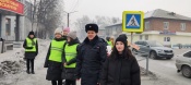 Инспектор ГИБДД и его юные помощники школы №1 провели с горожанами тематические занятия «Пешеходный всеобуч».