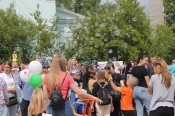 В утреннее время в парке «Радуга детства» собрались дети из пришкольных лагерей. Для всех жителей города с самого утра звучат со сцены песни. Работает множество интерактивных площадок.