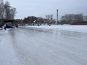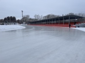 Отметим, что на стадионе традиционно залиты беговая дорожка и хоккейная коробка. Однако, в этом году ледовая дорожка стала почти в два раза шире.