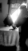 На этот раз фотосъёмку в стиле ретро посвятили жизни одной семьи. Организаторы постарались передать настроение советских жителей. Для интерьера специально подбирали предметы быта, мебель, текстиль. Окна крест-накрест заклеили бумагой – таким нехитрым способом в годы войны старались сохранить стёкла на случай взрывной волны – они не разлетались и не могли нанести порезов.