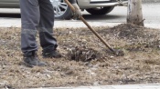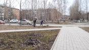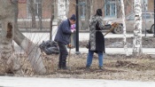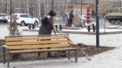 Сегодня специалисты работают на территории около памятника «Скорбящая мать». Специальными инструментами убирают прошлогоднюю листву, подметают пешеходные дорожки и очищают участок от мусора.