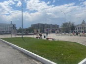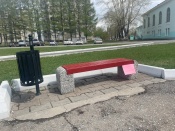 На Центральной площади в Назарове начали обновлять цвет скамеек