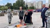 Горожане собрались на мемориале, где почтили память всех погибших в годы Великой Отечественной войны минутой молчания и возложили цветы к Вечному огню.