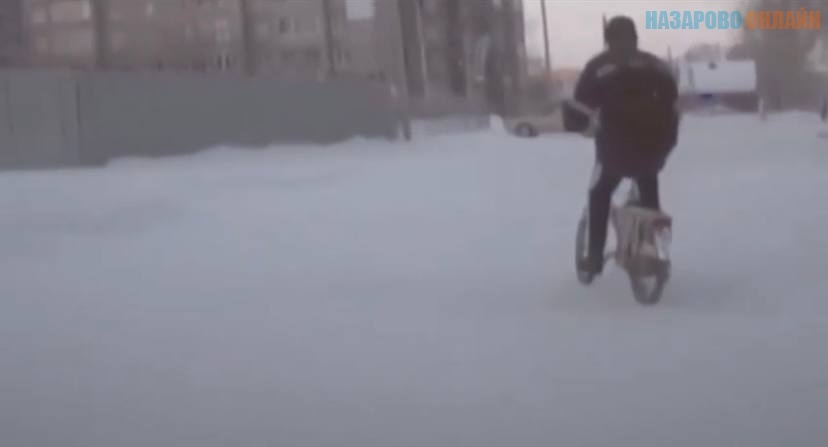 Сибирякам и морозы, и снег не помеха. Регистратор сотрудников ГИБДД в Назарове зафиксировал нарушителя на велосипеде.