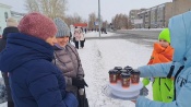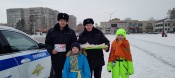 В городе Назарово участники дорожного движения встречают «безопасную» Масленицу вместе с инспекторами ГИБДД и их юными помощниками.