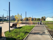 Территория рядом со спортивной школой преобразилась.Теперь здесь появилась универсальная спортивная площадка для занятий баскетболом, мини-футболом, волейболом, спортплощадка со спортивным оборудованием, детская игровая площадка с разными типами качелей и игровым комплексом, поляна для игры в бадминтон. Для комфортного времяпровождения территория дополнена местами отдыха с навесами, скамьями, урнами, велопарковками.