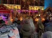 В 17 часов в назаровском Свято-Покровском храме началось Праздничное Всенощное Бдение. Храм с трудом вмещал всех желающих принять участие в службе, которая, по мнению прихожан, в этот день напитана особым торжеством и светом. У входа в храм появился Рождественский вертеп из снега, украшенный еловыми ветвями.