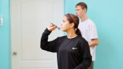 Ксюша Лукьянчук, воспитанница Назаровского детского дома: «Мы ходим спортзал, тренируемся, занимаемся различными видами спорта, играем в дартс, метаем мячи, играем стритбол, бегаем так же по залу. Неизвестно как выйдет, но мы надеемся на лучшее».