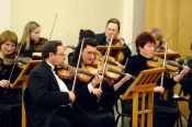 Перед началом концерта за кулисами привычно шумно и многолюдно. Артисты готовят инструмент к работе. В Назарово с гастролями прибыл красноярский камерный оркестр. Пятый международный фестиваль «Шедевры мировой классики на Енисее» проходит под