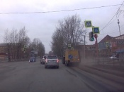 В городе Назарово начали массово убирать пыль с дорог и тротуаров