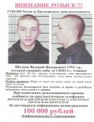 Валерий Шелков, 1994 года рождения, находится в розыске больше месяца. Размер вознаграждения за достоверную информацию о нём увеличен с 30 до 100 тысяч рублей. Молодой человек неоднократно судим за кражи и разбойные нападения, легко входит в доверие. В СИЗО города Ачинск ему было предоставлено право передвижения без конвоя. Воспользовавшись этим, Шелков совершил побег. По оперативной информации он может находиться в городе Назарово.