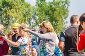 Одним из захватывающих соревнований «Русских игр» стала национальная борьба на поясах. В трех весовых категориях сошлись лучшие борцы города, среди них наши именитые единоборцы: серебряный призер Кубка мира по вольной борьбе – Александр Зеленков; серебряный призер чемпионата России по панкратиону – Стас Власенко. Открыл турнир по борьбе бронзовый призер Олимпийских игр в Афинах по дзюдо Носов Дмитрий, показав шуточный мастер- класс. Титулованный спортсмен сошелся в поединке с юным назаровским борцом – Ильей Ставером. Каждый чемпион борьбы на поясах получил памятные призы и живого барана. В завершении праздника прошли товарищеские встречи по русской лапте, пляжному регболу, волейболу и футболу.
