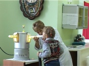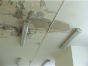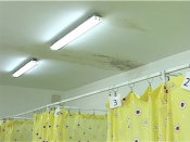 После каждого дождя на потолке и стенах потеки. Запитанное от электросети оборудование, в условиях повышенной влажности, несет реальную опасность. Часть оборудования от греха подальше уже перенесли в другое помещение. Правда, тоже сырое. Закрыть кабинет невозможно, слишком высока потребность в физиолечении, в день кабинет принимает до 80 маленьких пациентов.