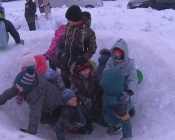 Елку устанавливают на небольшом пустыре в центре поселка. На площадке расположились яркие снежные фигуры Деда Мороза и Снегурочки, две снежные горки и снежная чаша. Местная детвора очень рада такому месту для отдыха и игр. Плюсы видят и родители, им не нужно каждый день возить детей в центр города.