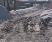 С наступлением тепла снег на дорогах превратился в кашу. Уже через несколько дней во многие дворы города заехать будет невозможно. С этой проблемой первыми столкнулись жители частного сектора. Улицы, на которых не видели технику с зимы, превратились в ловушку для автомобилистов. Там, где грейдер побывал, появились проблемы с водоотведением. Как на улице Красноармейская, жители которой подготовились к весне заранее, очистив ото льда и снега сточную канаву. Но дорожная техника, жалуются люди, полностью засыпала канаву снегом. Объемы внушительные, самостоятельно снег не откопать.