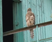 Неожиданного гостя приметили жители многоквартирных домов, когда стали выносить мусор. На перилах верхнего этажа бункера, со слов людей, второй день гордо восседает красивая птица и никак не реагирует на прохожих. Неравнодушные граждане выражают беспокойство, что такая спокойная птица быстро станет легкой добычей для местных собак и кошек. Появилась версия, что ранее птица была в частном хозяйстве и могла просто улететь. Она легко подпускает людей и не проявляет агрессии.
