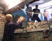 Андрей Шендрик, заместитель директора по техническим вопросам ООО ТРЭЖ: «При строительстве дома еще в советское время строители допустили нарушение в работе. Фундамента лестничной площадки не было. Мы начали прорубать «окно», чтобы обеспечить заливку бетона. При разборе кирпичной кладки рядом с лестничным проемом произошло обрушение. Лестницы сборные, сейчас установим временный деревянный спуск. На полное восстановление уйдет минимум три-четыре дня. Жильцам придется потерпеть эти неудобство. Это ради их же безопасности».