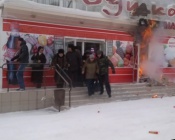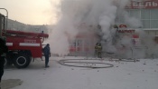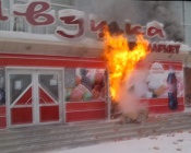 В середине дня в подсобном помещении супермаркета «Ивушка» по ул.Советская произошло возгорание. В складе хранилась бытовая химия. От высокой температуры начали взрываться баллоны с дихлофосом и оторвало дверь склада. Помещение имеет отдельный вход с улицы, поэтому эвакуации покупателей ничего не мешало. Площадь возгорания небольшая, ликвидировать пожар удалось быстро. Причины возгорания установят сотрудники пожнадзора. Предварительная версия- короткое замыкание электропроводки. На место прибыл пожарный расчет. Основные торговые площади огнем не задеты, помещение магазина сейчас проветривается. Мусор после пожара со входа уберут, вывеску заменят. Владельцы уверены- уже в воскресенье супермаркет будет работать в обычном режиме.