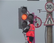 Светофор оборудован электронным табло с отсчетом времени. Впервые в Назарово установлен светофор с задержкой. Для удобства водителей интервал в переключении двух светофоров составит 10 секунд. Это позволит избежать возможных ДТП, если кто-то из водителей решит завершить маневр на желтый сигнал светофора.
