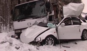 Все произошло в пятом часу вечера. На крутом повороте после АЗС «Прометей» столкнулись автомобиль Honda и японский грузовик Hino. Легковушка ехала со стороны Ачинска, водитель, заходя на поворот, не справился с управлением на скользкой дороге. В