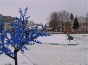 На центральной площади появились светодиодные деревья. В этом году их стало больше. К прошлогодним зеленым ивам добавились сакуры синего цвета. Фонтан украсил акриловый снеговик, который подсвечивается в темное время суток. На этой неделе здесь же на фонтане появятся такие же светодиодные акриловые олени.
