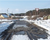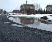Поселок Южный прославился огромной лужей на перекрестке двух улиц: Надежды и Северная. ГИБДД уведомляла ответственных лиц города о непригодности данного участка для автобусных маршрутов. С каждым годом воды становится все больше, глубина и ширина ямы увеличивается. При этом указанная остановка - конечная. На берегу не просто лужи, а целого моря, ежедневно люди вынуждены ожидать автобуса. Сами перевозчики особой радости также не испытывают. Как рассказывают жители поселка - конечная автобусная остановка является проблемной уже несколько лет. Прошлая администрация города в лице Владимира Шандурова и его заместителя Игоря Каршакевича пообещала в 2009 году исправить ситуацию, но денег в связи с кризисом не оказалось и у новой власти. Поселок Южный входит в избирательный округ депутата Виктора Макерова. Он предлагал включить ремонт дороги в статью расходов городского бюджета, но коллеги Виктора Викторовича не поддержали. В качестве решения многолетней проблемы, Макеров предложил людям не платить налоги. Решать вопрос с государственными долгами людям не пришлось. Сегодня из ямы откачали воду и засыпали щебнем. К восстановлению дорожного полотна приступило ООО "ДРСУ". Заказчиком выступил город. Данный участок дороги необходимо поднимать и в стороне оборудовать канализацию. Дренаж и асфальт, возможно, появиться здесь только летом. Жители поселка Южный надеются, что для полного устранения проблемы средства будут изысканы.