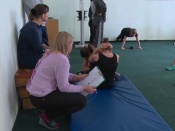 За выполнение норм абитуриенты получат дополнительные баллы к ЕГЭ. Для получения золотого значка отличия старшеклассникам предстоит пройти 8 видов испытаний. Первыми в спортзал отправились девушки. В назаровском центре тестирования школьники сдают прыжки в длину, пресс, отжимание, подтягивания на низкой перекладине и проходят проверку на гибкость.