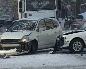 В обеденное время на центральном перекрёстке Назарово произошла авария. В ДТП пострадали сразу три автомобиля. По словам очевидцев, женщина-водитель «Toyota Carina» двигалась по Карла Маркса. Движение осуществляла на мигающий сигнал светофора. По